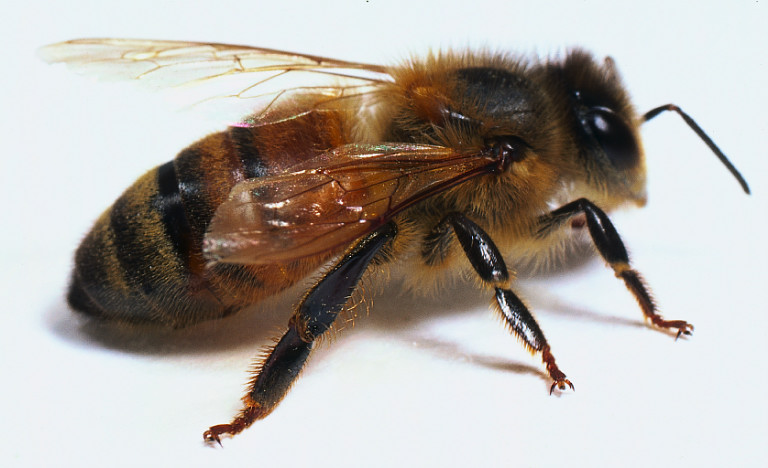 Worker bees are sterile, female bees that lack the ability to mate with males. Raised on a diet of pollen, they develop differently from the queen, and are built to nurse and care for the young, forage for pollen, nectar, water, and plant resins, and defend the hive with their lives. Collectively, the workers make all the decisions in the hive. They decide how many bees to send out foraging and where. They decide when it is time to expand the hive with new hexagonal combs for storing honey and raising brood – and when it is time to raise new queens for the purpose of leaving and establishing new nests in the spring. They regulate the temperature of the hive with fanning, and can fill themselves up with honey to evacuate the nest if necessary.